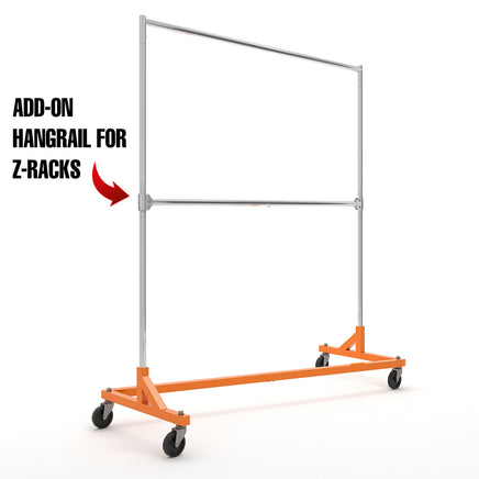 Add-On Hangrails For Z-Racks, 60"L, With Clamps, For Double Hanging, Chrome